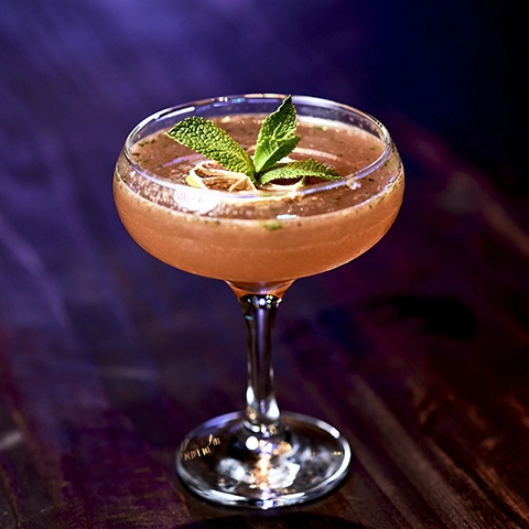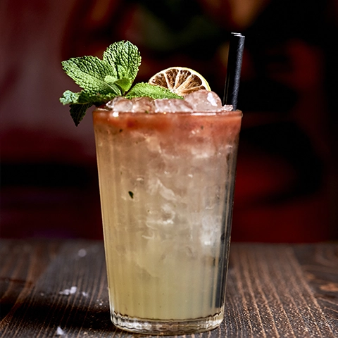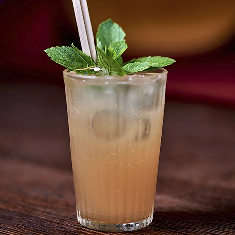 Ciemny rum + Frizzante + Limonka + Bitters + Mięta + Cukier