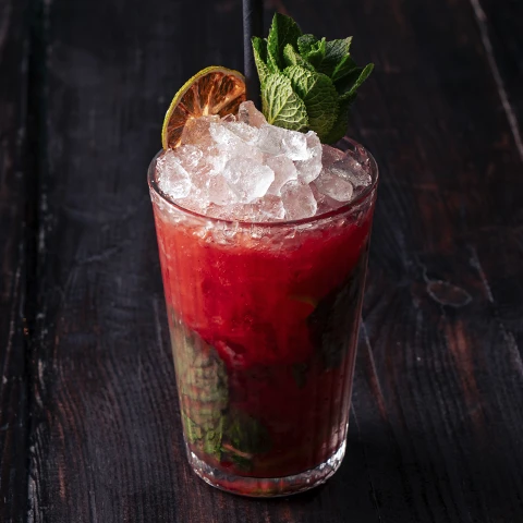 Jasny rum + Limonka + Mięta + Woda Gazowana + Truskawki